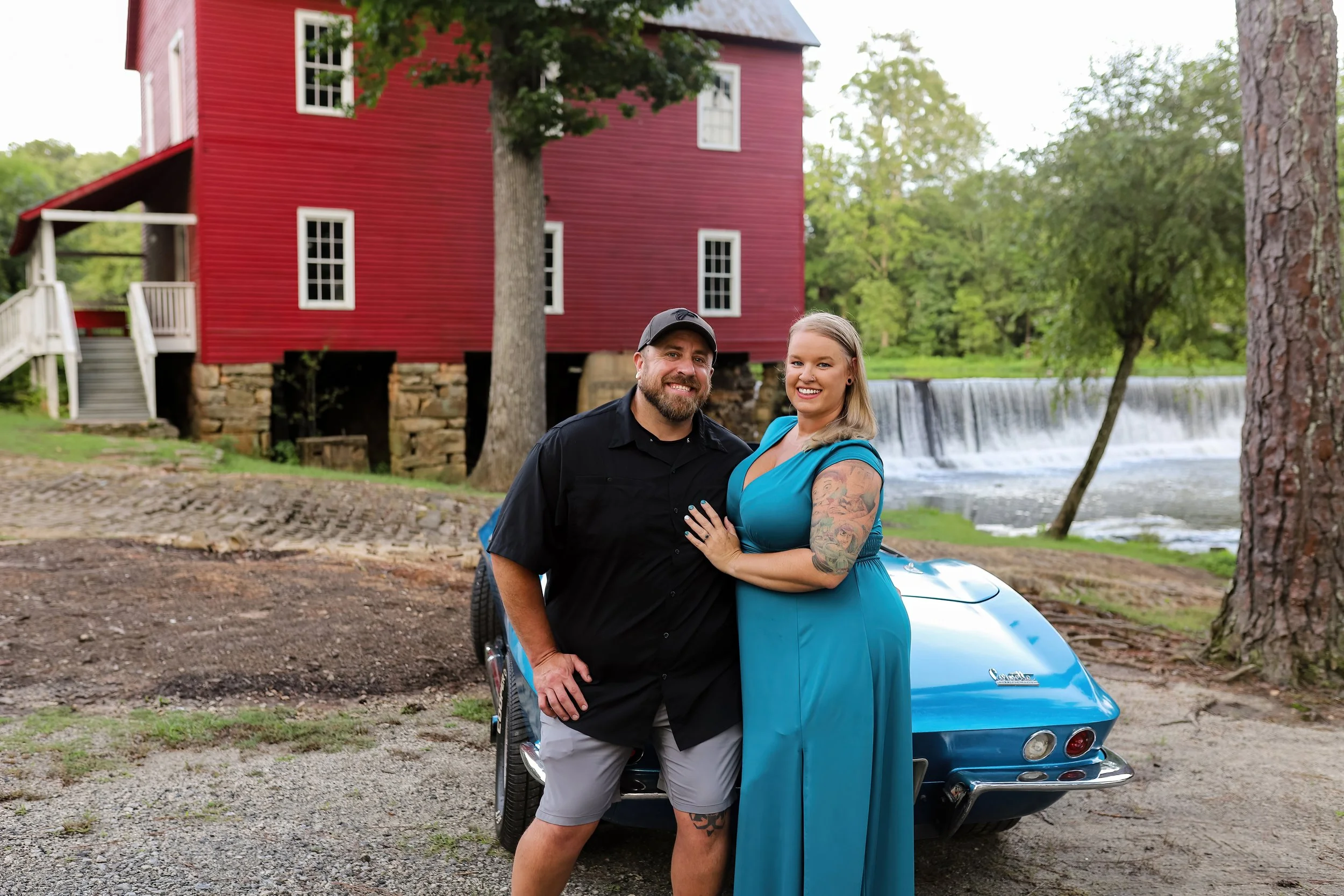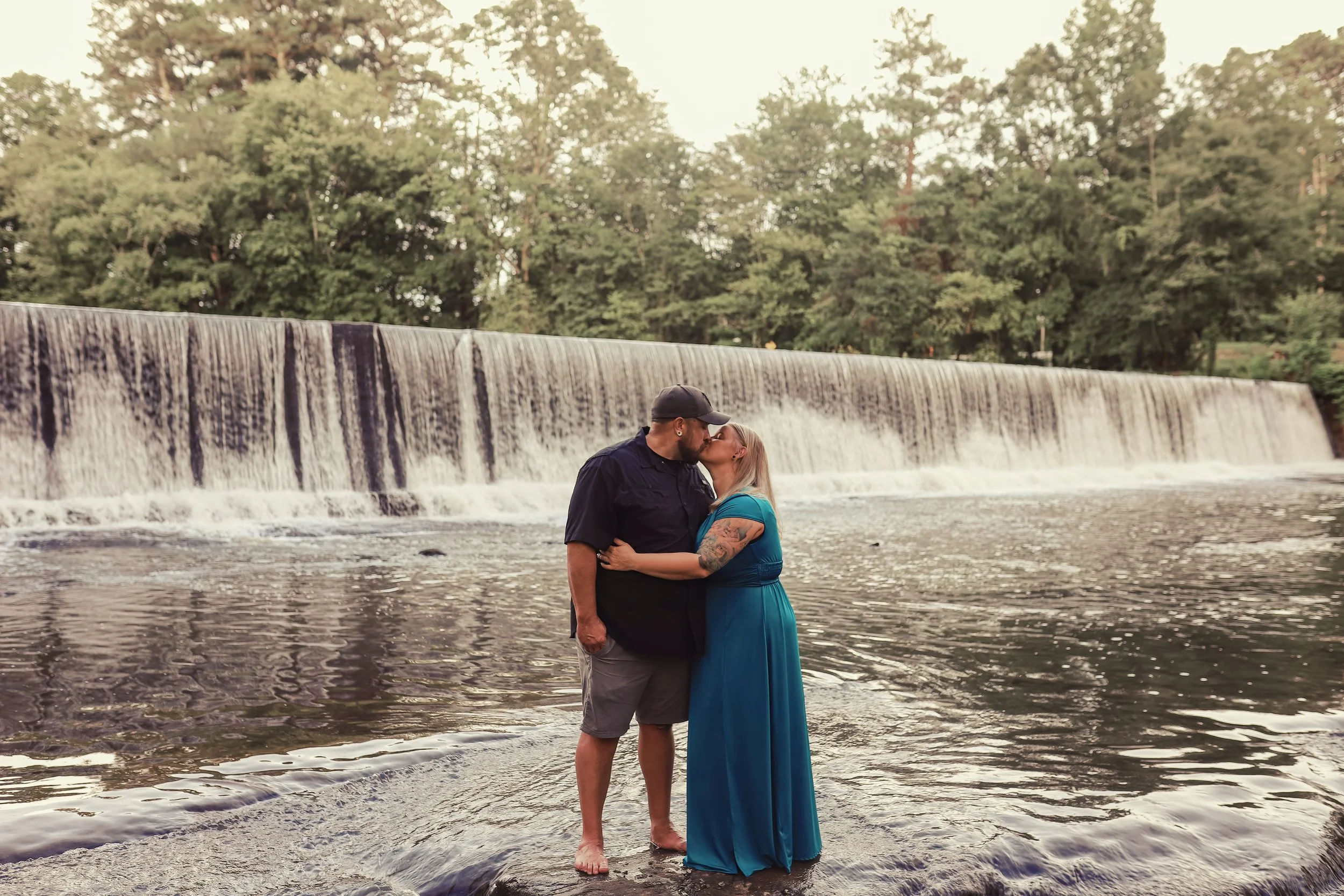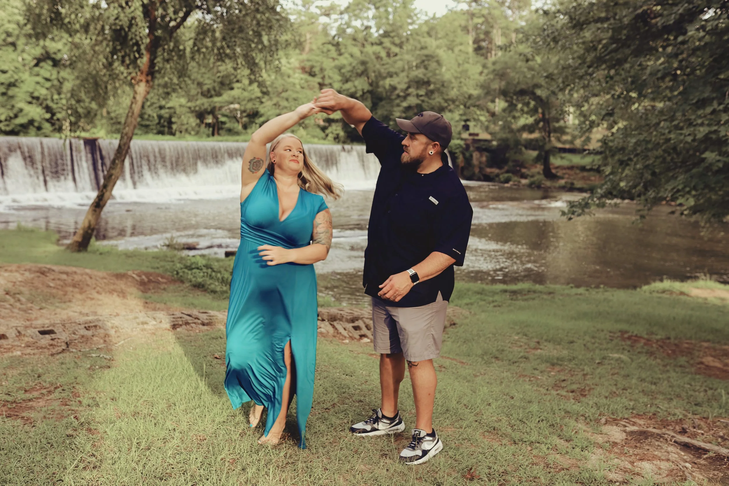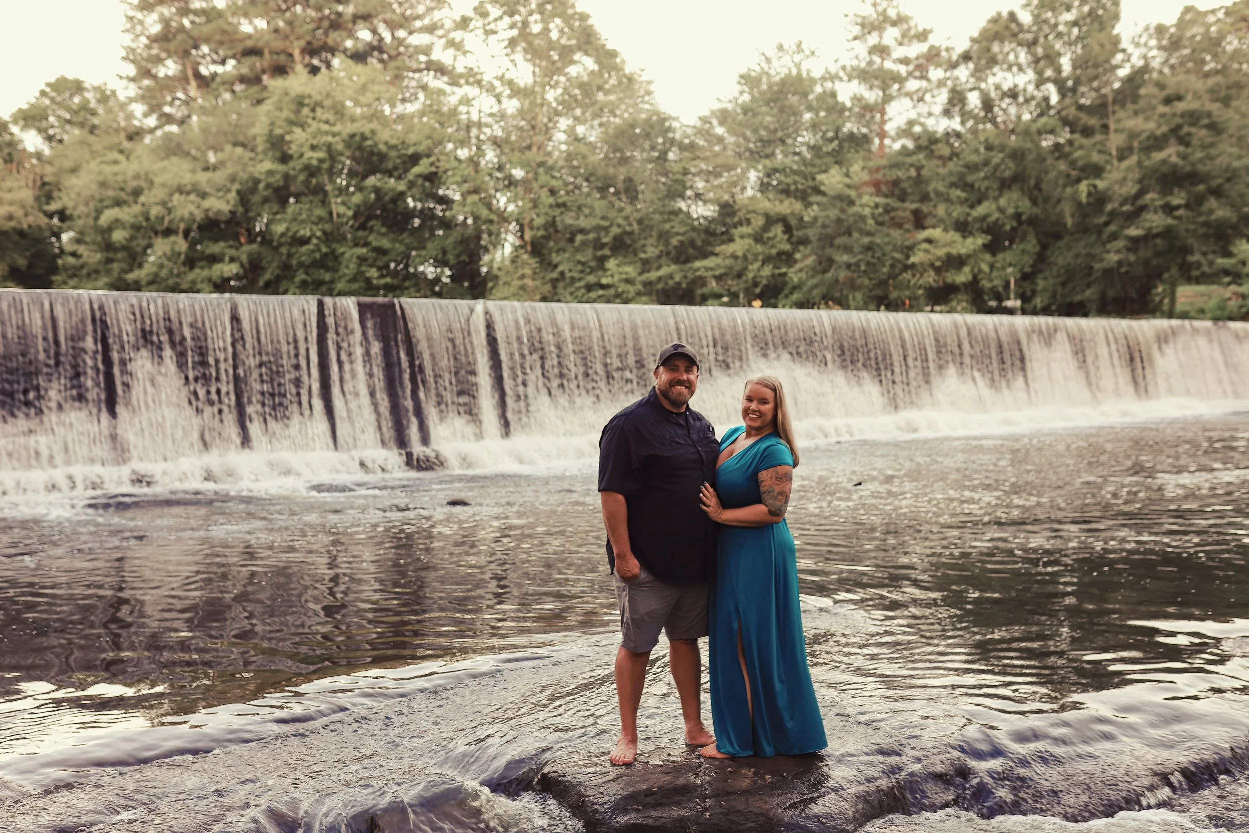 We met up at Daisy Hill to start their engagement session. It is located about twenty miles south of Atlanta. They wore outfits that just fit their style. (Also, it’s for the save the dates ** see their customs shirts below**). It is surrounded by a pond as well a nice lounge area too. It’s a beautiful venue to book for an outdoor wedding.